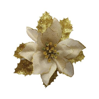 Gudotra 30pz Decorazione Di Albero Di Natale Fiorellini Fiori Di Stella Di Natale Color Crema Oro Fiore Artificiale Decorazioni Natalizie Addobbi E Decorazioni