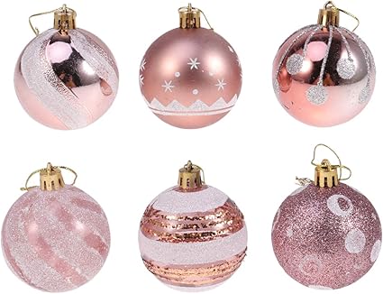 Amosfun Ciondolo A Forma Di Palline Di Natale Con Glitter Decorazione Per Albero Di Natale Oro Rosa Decorazione Per Feste Balli Di Fine Anno 6 Cm 24 Pezzi Amazon It Casa E Cucina