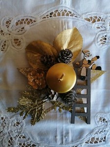 Composizione Natalizia Centrotavola Oro Addobbi Decori Candele Fiori Idea Regalo Ebay
