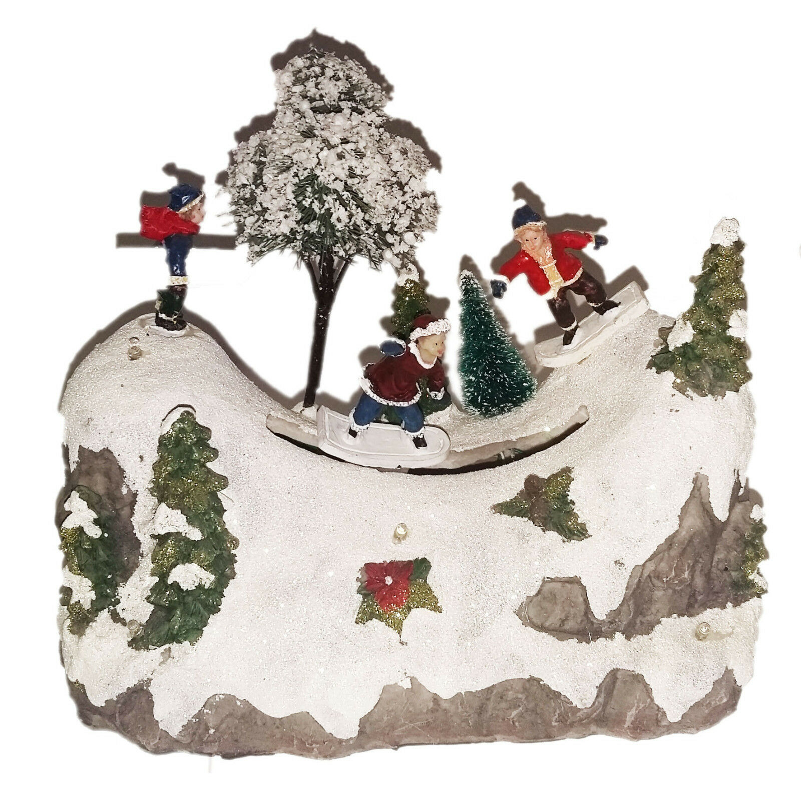 Villaggio Natalizio 25x25x35 Cm Con Sciatori Movimento Batteria E Corrente Villaggio Villaggi Di Natale Villaggio Di Natale
