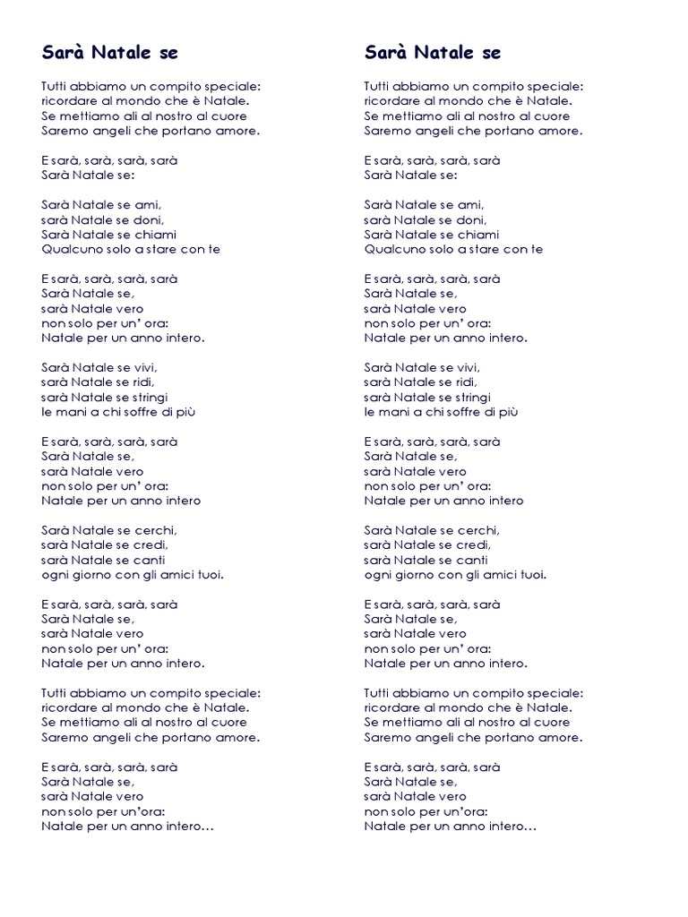 Natale se ami Sar. Natale se testo Tutti abbiamo un compito speciale. Carousel Previous Carousel Next.