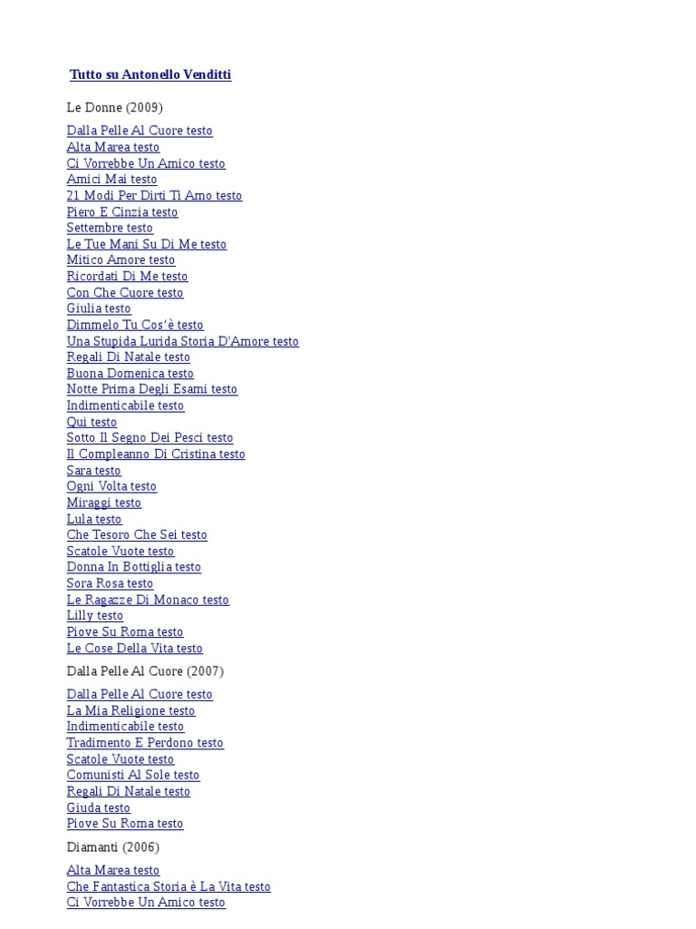Il quarto singolo. Dalla Pelle Al Cuore. Listen to Regali Di Natale by Antonello Venditti 28046 Shazams featuring on Antonello Venditti Essentials and Antonello Venditti Next Steps Apple Music playlists.