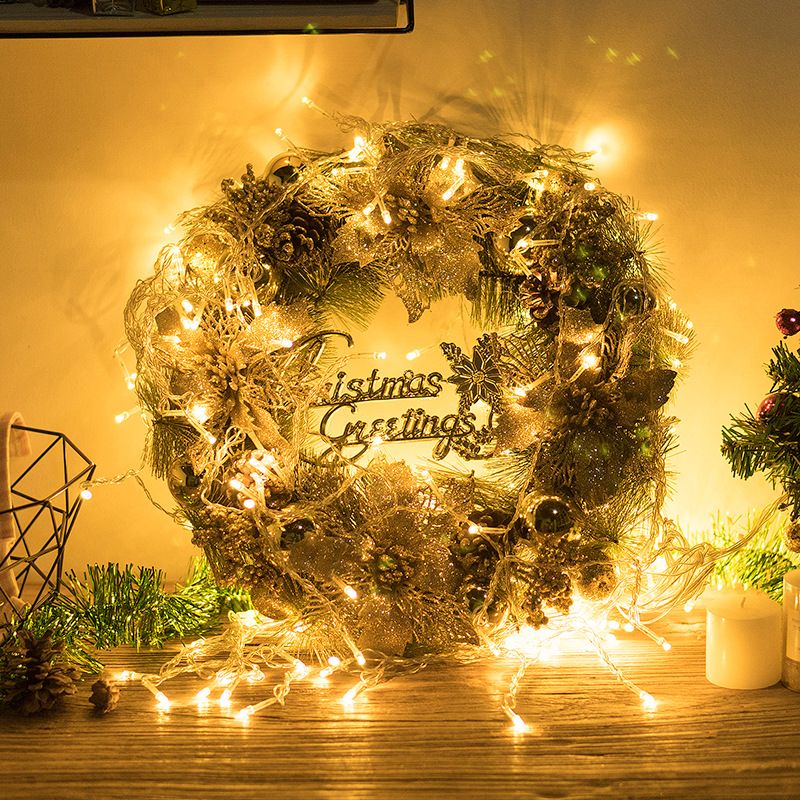 Acquista Corona Di Natale Con Luci A Led Buon Natale Oro Palle Di Fiori Pine Cone Natale Garland Ornamenti Front Door Tatuaggi Di Windows A 9 88 Dal Janezhang0326 It Dhgate Com
